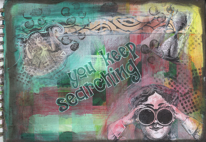 I am having a great time over at 21 Secrets, I am doing two workshops at the moment: one is Gretchen Miller’s Ready for Revo-ution which is about creating a book/journal about the changes you want to make or about the things you want to attract into your life. Gretchen very kindly posted my second page, about Living Life Fearlessly, on her blog Creativity in Motion.