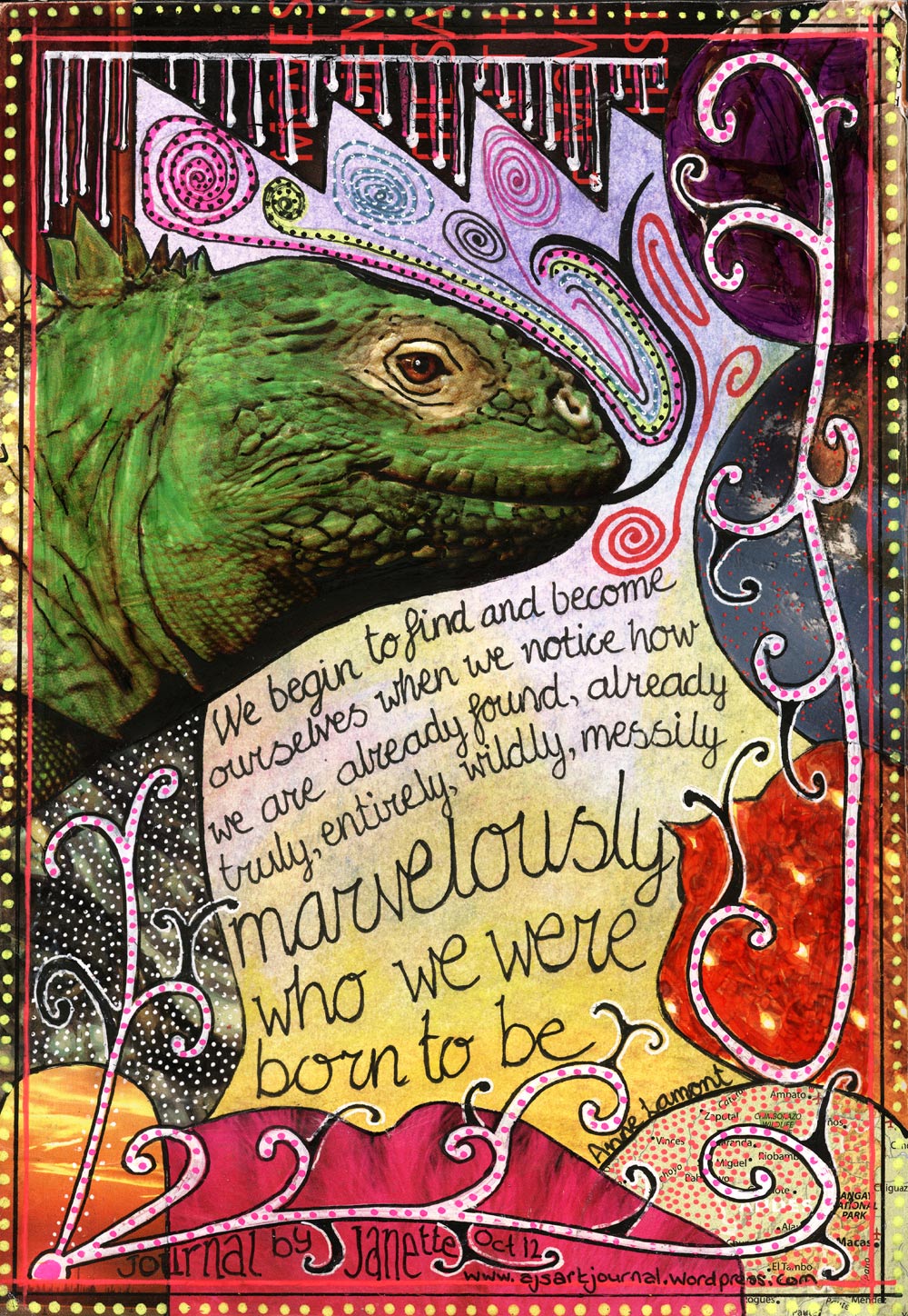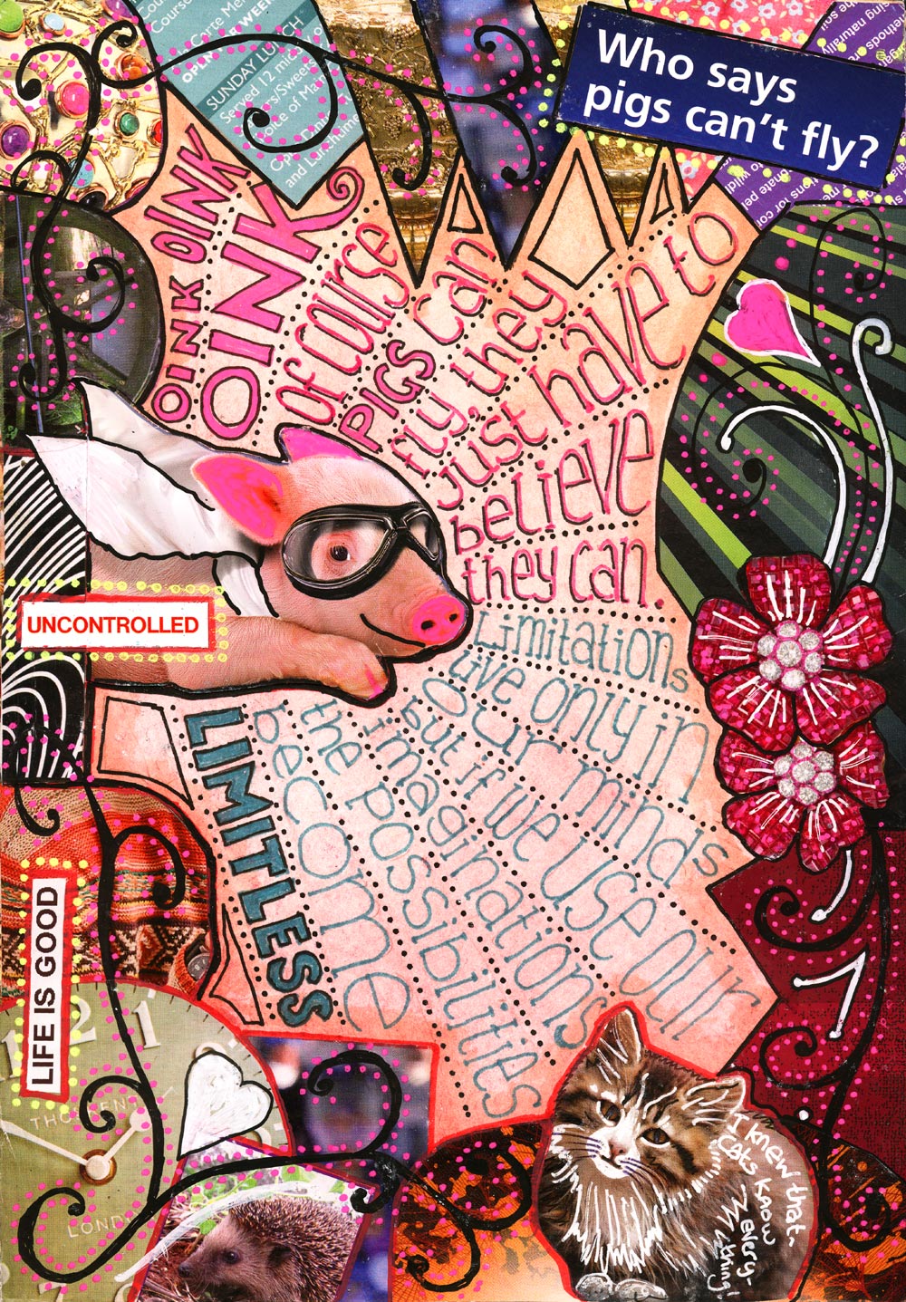 This image above is a single page from my A4 size journal and was done fairly quickly (I guess you can tell that) as part of the Fall Fearless and Fly challenge: