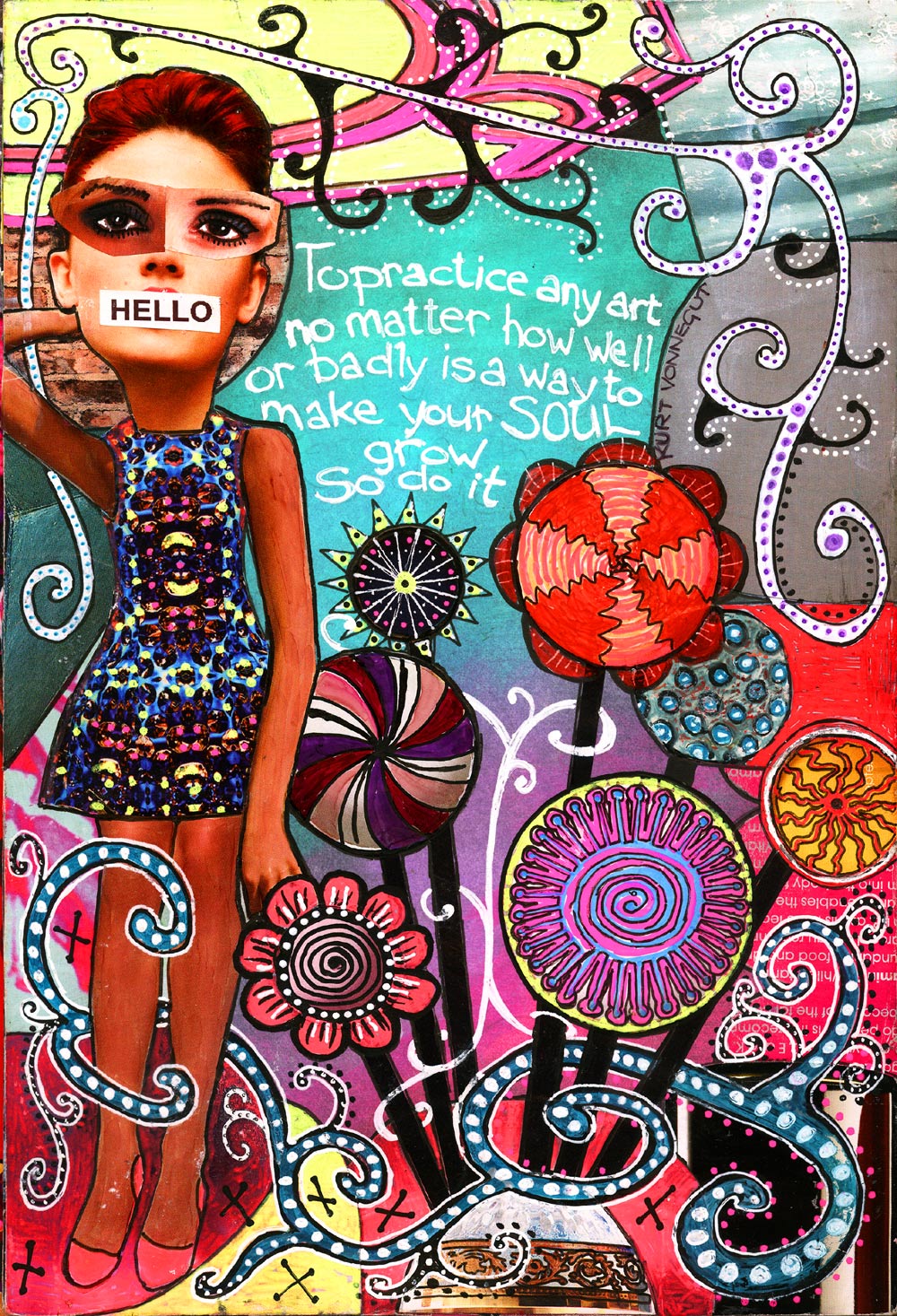 Well, my home and my art room make me feel safe and secure so that’s where I go for comfort. I managed to get my two cats into the image, but not my husband, he is probably around the back of the house tending to the garden, either that or he is upstairs haveing a nap 🙂 By the way my house is not as big as the one depicted on the page.