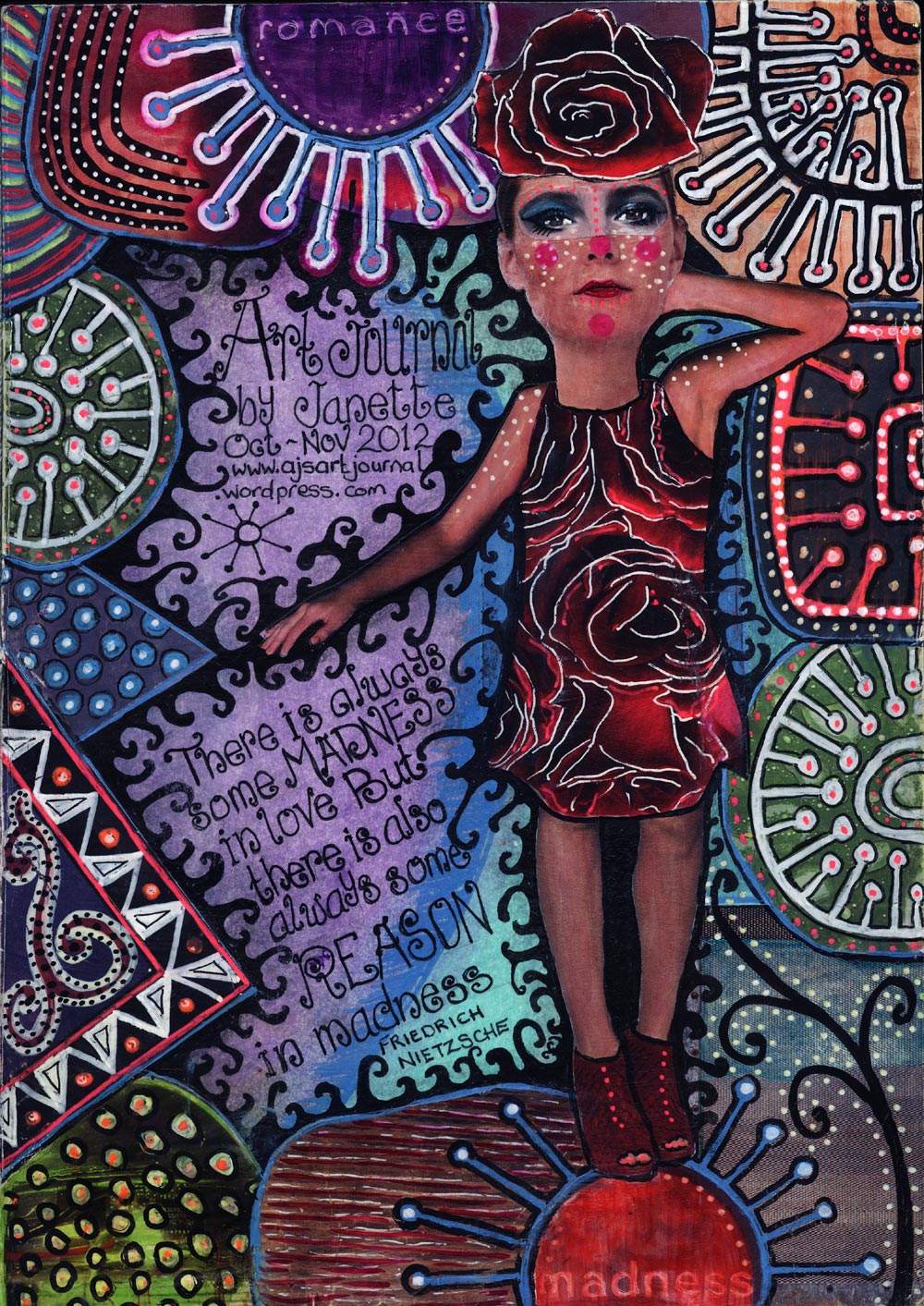 The page above is the second page of my third Teesha Moore inspired journal. As you can see another strange creature popped up to join me on this page. I have no idea where they come from but I suspect there are plenty more just waiting to materialise themselves as soon as I give them a chance 😉