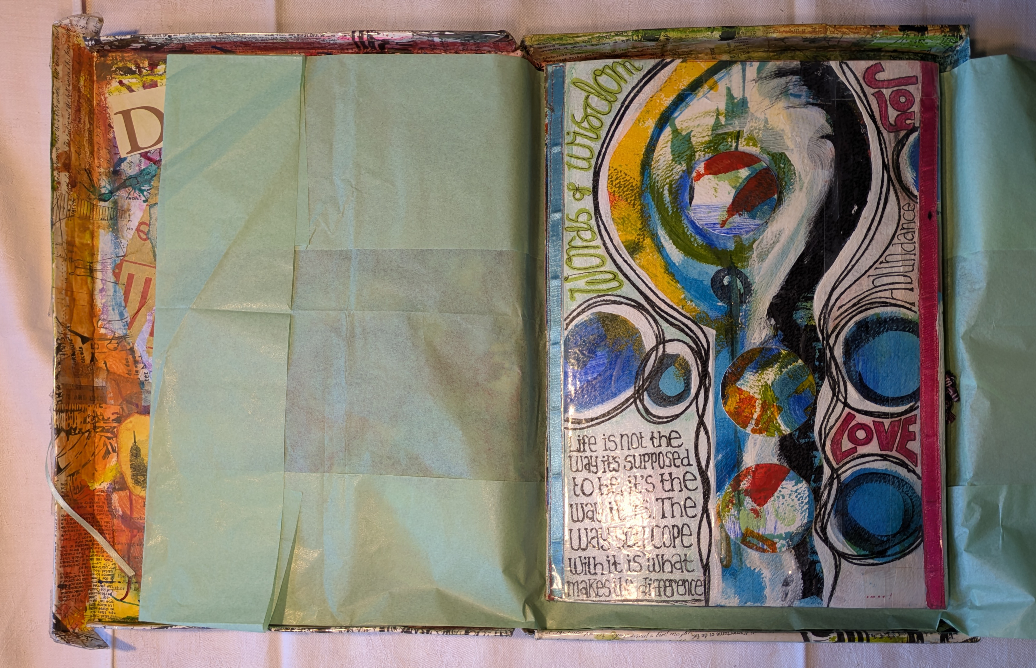 For years and years I’ve collected ‘positive quotes’ and ‘words of wisdom’. I use these quotes a lot in my artwork to try and encourage myself to be more positive. I’ve always had a negative slant and have spent a lot of my life trying to turn that around. Sometimes I’m more successful than others.