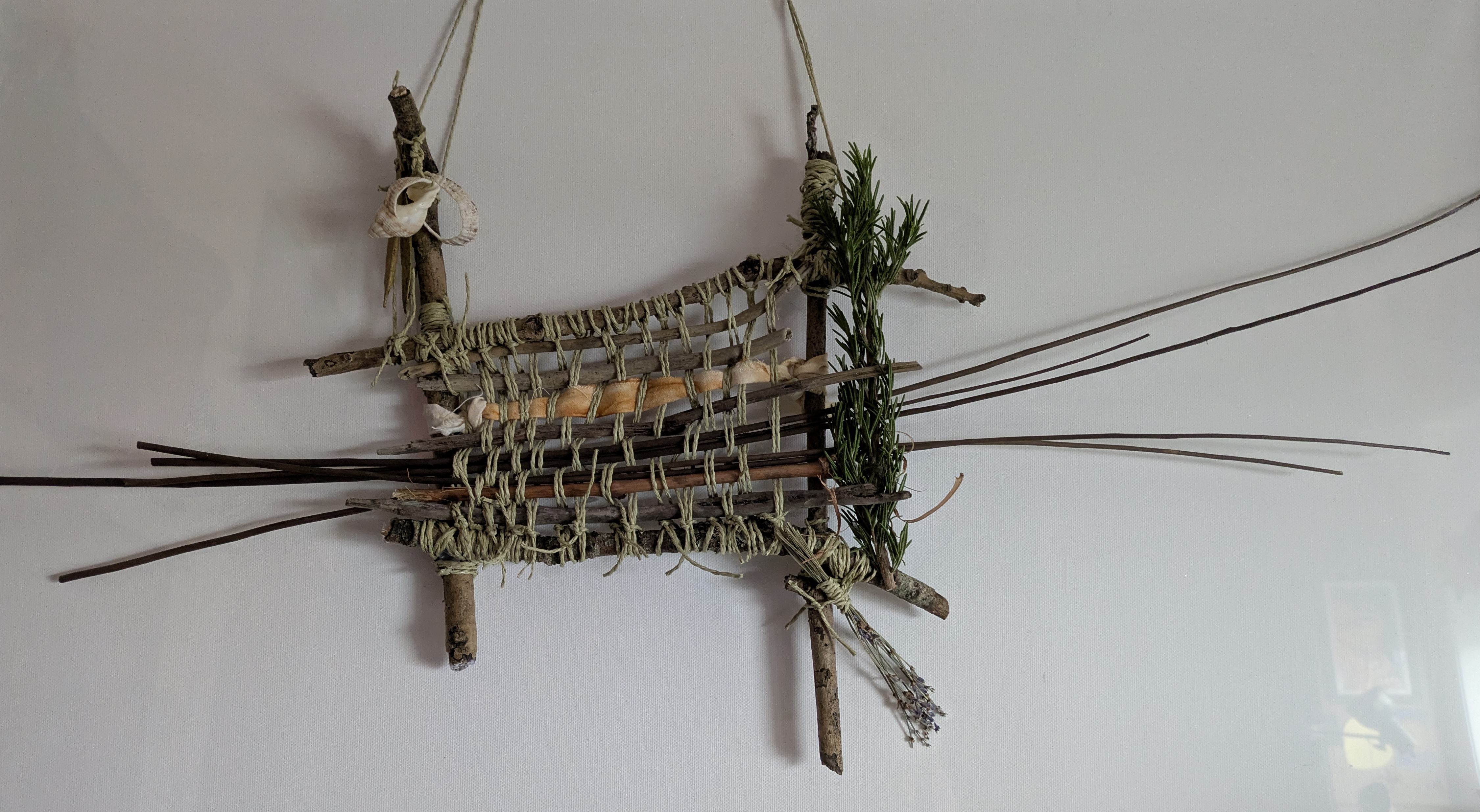 I wanted to do something creative with it, but I had lots of ideas and I didn’t want to do just one thing, so in the end I used the mask as a form to create a series of papier mache ‘warrior masks’. Each one fixed onto a canvas.