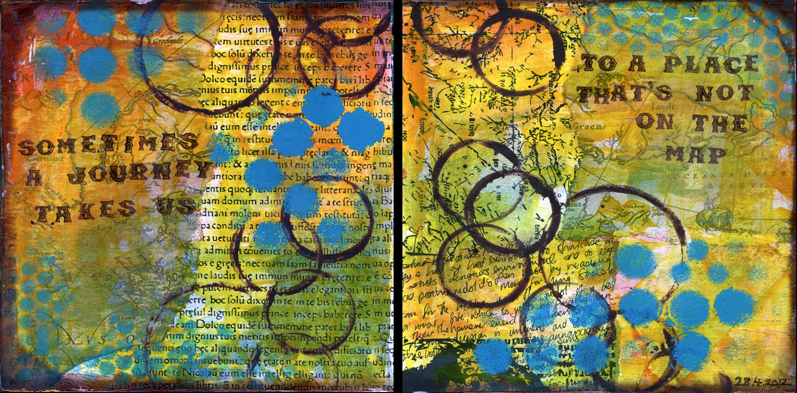 So because of all of the above I haven’t had much time for creativity again in the past month. Today I am sharing a small project I did earlier in the year – a birthday card for my friend Claudine. It’s called an Explosion Book (or Squash Book). The two images above show both sides of the book/card ‘exploded’ but it all squashes down to a small square. I forgot to take a picture of it squashed!