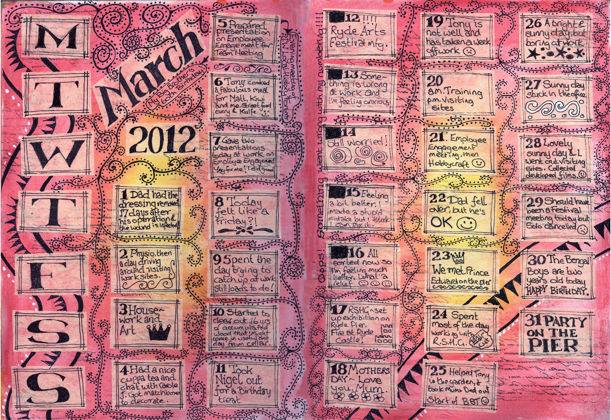 Above is my completed journal entry for March and below is how it looked at the beginning of the month.  I didn’t notice until I got to 12 March but I’d completely messed up with the numbering!  No wonder I got myself into such a pickle at work adding things up – sometimes I think I have number blindness, or maybe I’m just plain stupid?!  Oh well it all came good in the end.
